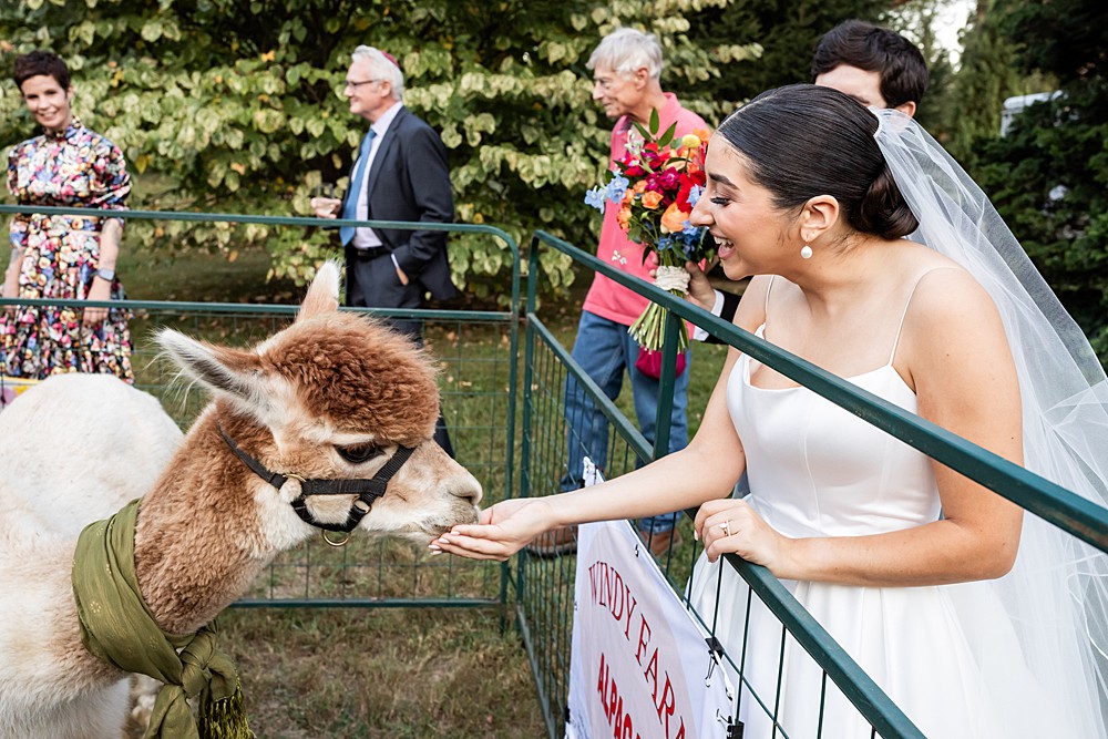 Yes, we’ve had alpacas more than once—and guests love them every time. These adorable animals added charm and approachability to this elevated farm wedding, while keeping guests entertained (and cameras clicking) during cocktail hour.