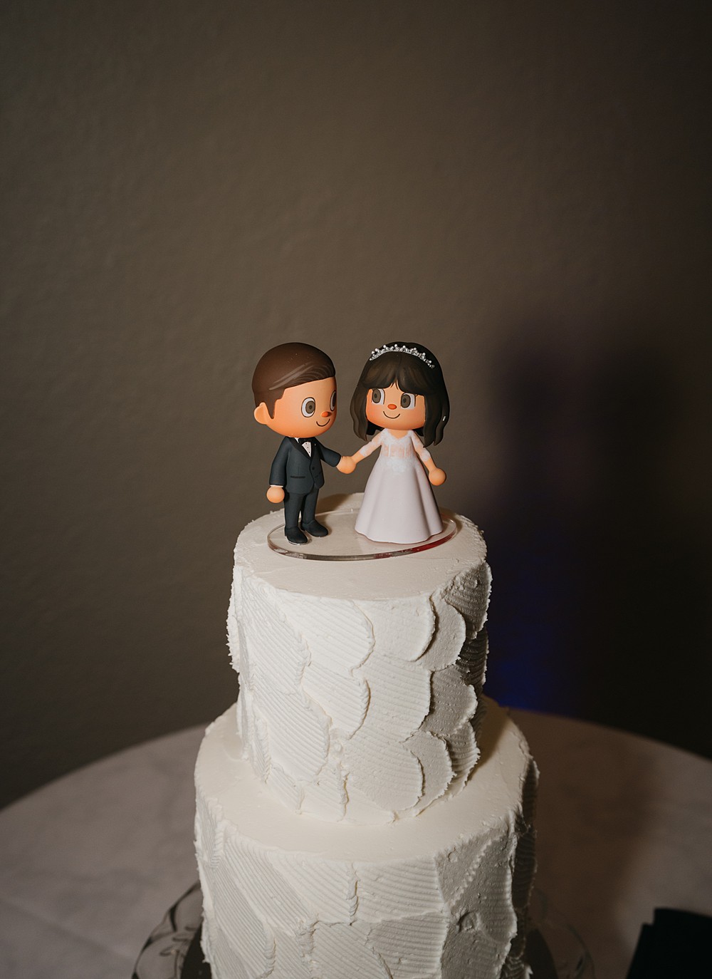 As longtime gamers, Olivia and Nick infused subtle nods to their favorite hobby into their day. A pair of custom cake toppers modeled after their Animal Crossing avatars sat atop their cake, while they quietly played a trading card game at their sweetheart table between toasts.