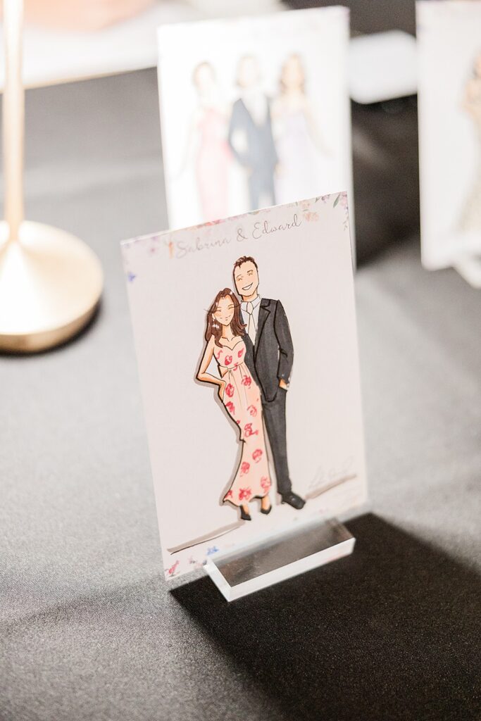 Sabrina and Edward’s wedding was all about thoughtful luxury. A live fashion illustrator created personalized sketches of guests throughout the evening—an elevated favor they could take home. Later, a surprise boba tea bar served the couple’s favorite late-night treat.